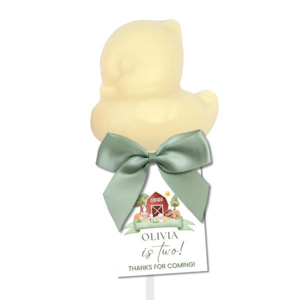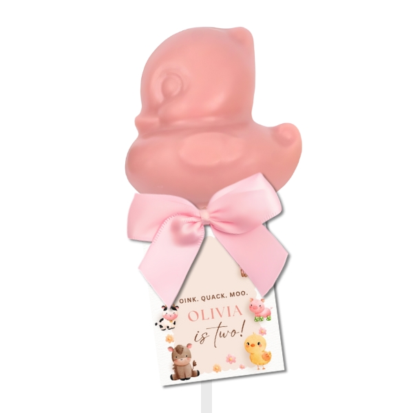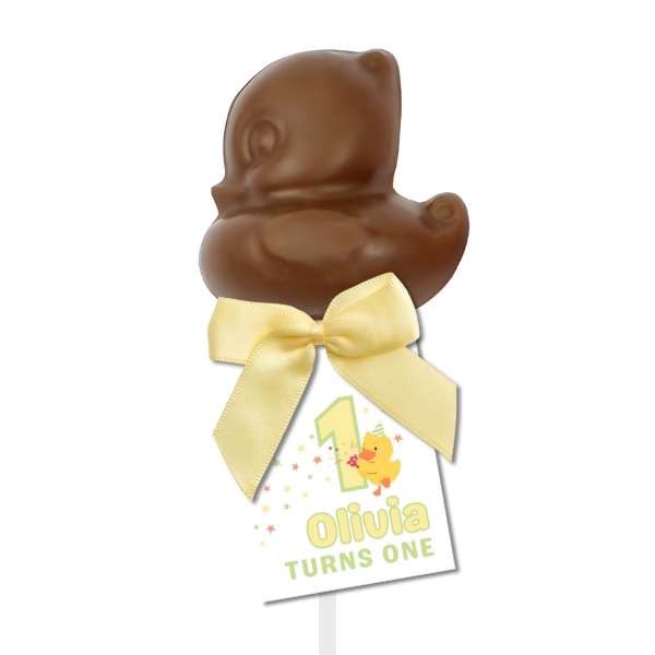 Our Baby duck chocolate lollipops make the cutest favour or gift, whether you are throwing a baby shower, christening or corporate event, we can make your lollipops bespoke to you.