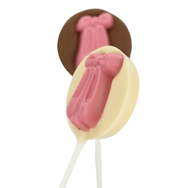 Ballet Slipper Round Chocolate Lollipops, set on a chunky base of either milk or white chocolate.