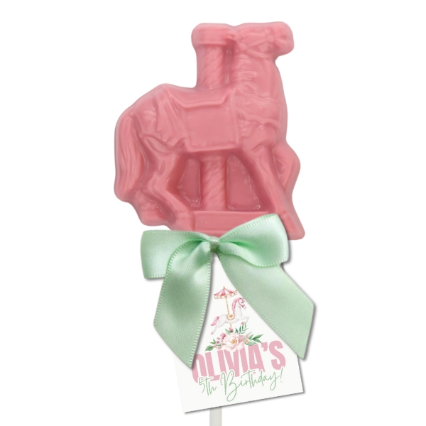 Our beautiful Carousel horse chocolate lollipops make to perfect treat for your Fairground-themed party, baby shower or event.