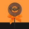 Fun themed lollipop combining three chocolate flavours