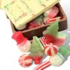 Ingredients: Sugar, Cocoa Butter, Whole Milk Powder, Cocoa Mass, Emulsifier Soy Lecithin (E322), Natural Vanilla Flavouring (Soya), Glucose-Fructose Syrup, Invert Sugar Syrup, Water, WHEAT Starch, Modified Maize Starch, Corn Starch, Beef & Pork Gelatine, Palm Fat, Humectant: Glycerol; Potato Starch, Acids: Malic, Latic, Citric Acid, Acid: E260, E170, E330, Gelling Agent: Pectins; Fruit & Vegetable Concentrates (Lemon, Safflower, Radish, Tomato, Aronia, Elderberry, Lemon, Orange, Apple, Pumpkin, Carrot, Grape, Pear, Blackcurrant, Spirulina, Pumpkin ), Caramelised Sugar Syrup, Emulsifier E471, Flavourings, Elderberry Concentrate, Vegetable Oils, Coconut Fat (Palm Kernel, Coconut) Glazing Agents: Beeswax, Carnauba Wax, Shellac, Stabilizer: Arabic Gum, Colours: E100, E120, E129, E133, E141, E171.