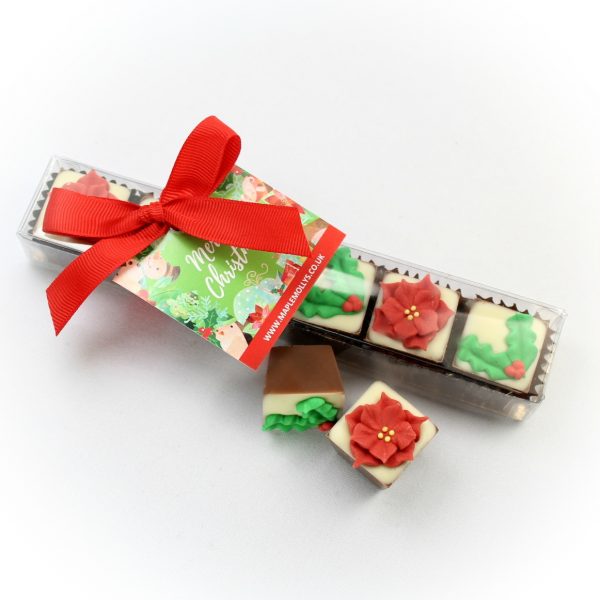 Christmas Holly & Poinsettia Belgian Chocolate Praline cups.