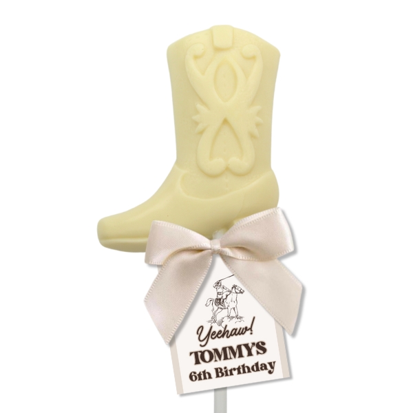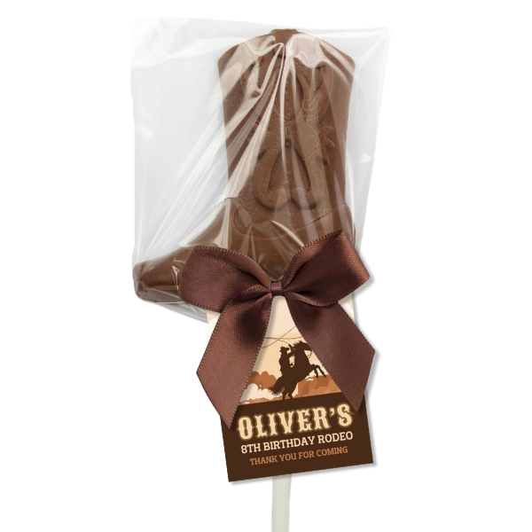 Our Cowboy Boot Chocolate Lollipops make the perfect addition to your cowboy/girl themed event, made from the finest Belgian chocolate in either milk, white, dark or strawberry pink chocolate.