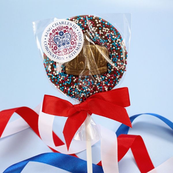 Whatever the royal occasion, our crown sprinkled lollipops will mark the occasion in style! picture shows the coronation sticker but any occasion can be supplied.
