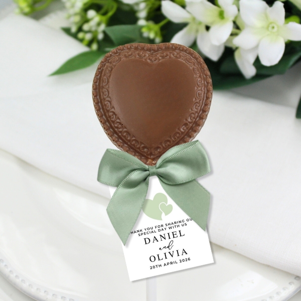 Our Fluted Heart Chocolate lollipops are the perfect favour for any event with a romantic theme. Choose from either milk, white, dark or pink strawberry chocolate.