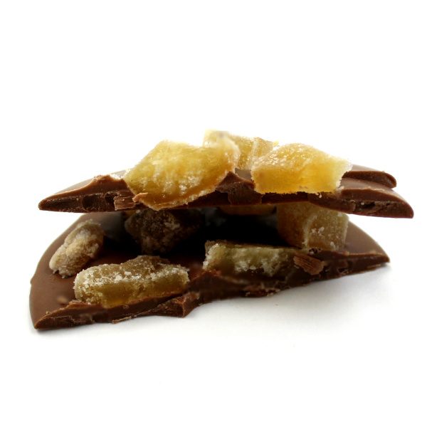 Thin Belgian Chocolate discs topped with crystallised ginger, wrapped beautifully for the festive season.