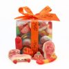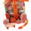 Ingredients:Â Sugar, Glucose Syrup, Water, Gelatine (Pork & Beef), Maltodextrin, Acid (Citric Acid, Lactic Acid), Vegetable Oil (Coconut, Palm Oil), Glazing Agent (Carnauba Wax, Beeswax), Acid (Citric & Malic Acid), Invert Sugar Syrup, Gelling Agent (Pectins), Acidity Regulator (Sodium Citrates), Vegetable Oils (Palm), Maize Starch, Humectant Sorbitols, Modified Potato Starch, Corn Starch, Flavourings, Fruit & Vegetable Concentrates (Grape, Black Carrot, Radish, Blackcurrant, Carrot, Pumpkin, Apple, Tomato, Spirulina), Colours (Curcumin, Brilliant Blue FCF, Paprika Extract, Cochineal) E100, E102, E120, E129, E133, E153, E160c. Some colours may have a negative effect on attention in children