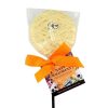 Your lollipop will come wrapped and tied with a bow and a Happy Halloween label