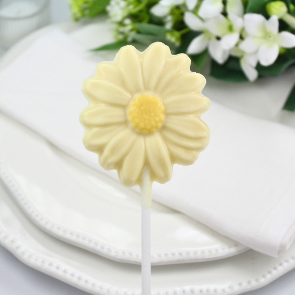 Made from 28% cocoa luxury Belgian chocolate in the shape of a large daisy flower.