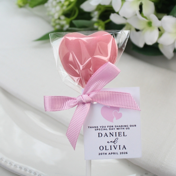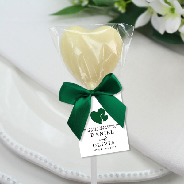 Our small heart chocolate lollipops are the perfect “simple yet elegant” favour. Made from the finest Belgian chocolate in your choice and personalised to match your theme and decor the look and taste is sure to woe your guests,