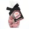 Strawberry chocolate jelly brains gift bag containing twelve delicious solid strawberry chocolate shaped brains topped with a fruity jelly brain.