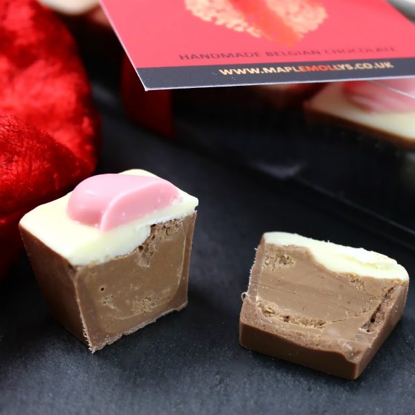 Sugar, Cocoa Butter, Whole Milk Powder, Cocoa Mass, Emulsifier Soy Lecithin (E322), Natural Vanilla Flavouring (Soya), Hazelnuts, Strawberry Natural Flavouring Substances, Triacetin, Colours, E120, E129. Some colours may have an adverse effect on attention in children.